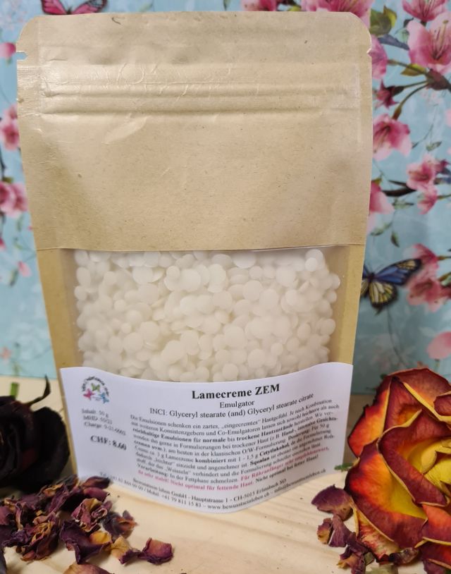Lamecreme ist ein PEG-freier Emulgator auf Basis von Fettsäuren, Glycerin, Zitronensäure, Palm- sowie Sesamöl und ist frei von synthetischen und petrochemischen Rohstoffen. Dieser Emulgator ist sehr gut für normale bis reife Haut geeignet. Mit Lamecreme lassen sich sowohl leichte als auch gehaltvolle O/W-Formulierungen herstellen.
