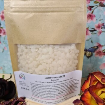 - Lamecreme alleine verleiht das Gefühl etwas zu „picken“, daher ist eine Kombination mit Cetylalkohol oder Squalan zu empfehlen. Wir finden diese Kombination für 50 g Creme sehr angenehm: 3 g Lamecreme + 1 – 1.5 g Cetylalkohol.