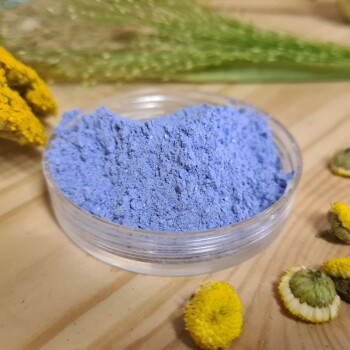 Tipp: Bitte beachten Sie bei der Verarbeitung in der Seife, dass es je nach verwendeten Ölen zu einem Grünstich kommen kann. Hier empfehlen wir so zu dosieren, dass bereits der Seifenleim eine blaue Färbung aufweise.