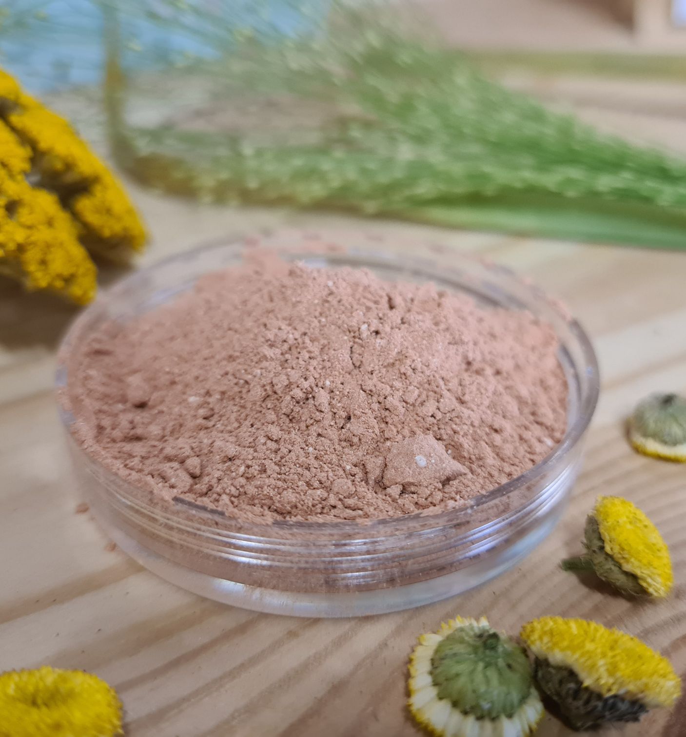 Rosa Tonerde ist eine Mischung aus Bolus Alba (Kaolin, weisser Lehm) und roter Tonerde. Sie ist bestens für alle Hauttypen und Kinderhaut geeignet.